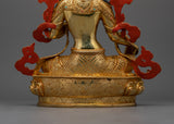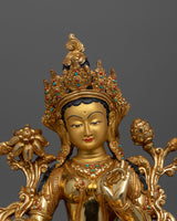24K Gold Gilded Jetsun Dolma Green Tara Altar Statue | Female Buddha of Compassion for Spiritual Practice
