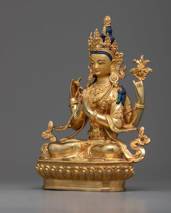 Handcrafted 24k Gold Gilded Chenrezig Avalokiteśvara Statue