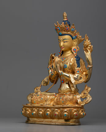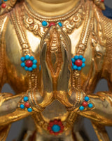 24k Gold Gilded, Handmade Chenrezig Statue, Boddhisattva Deity