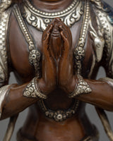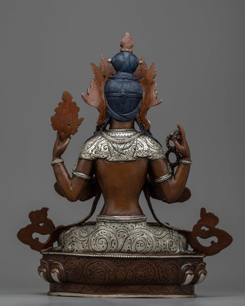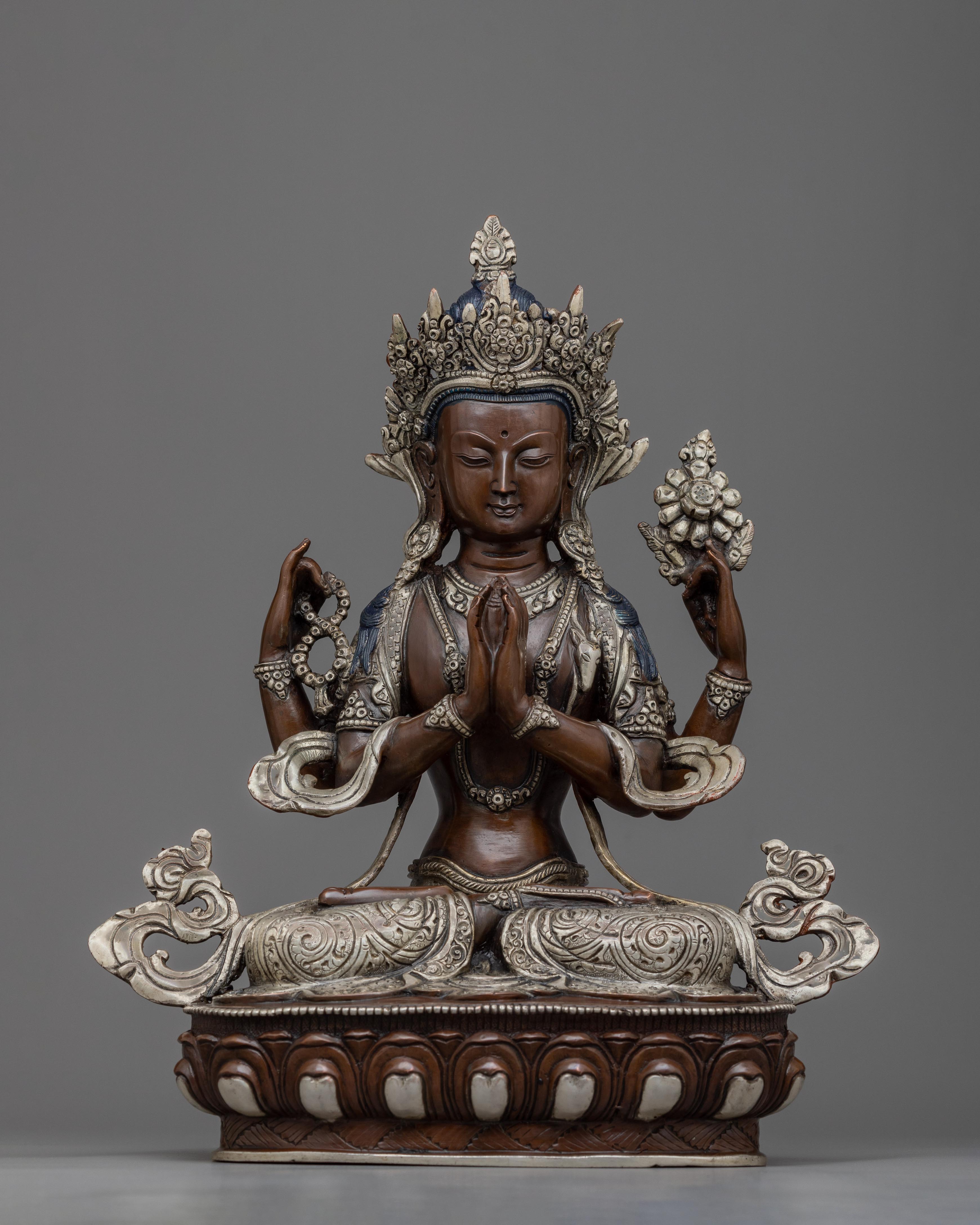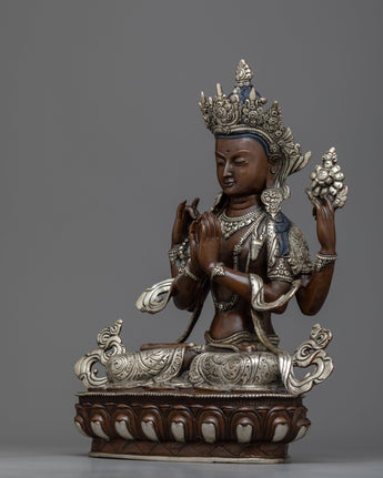 Handmade Silver-Plated Statue of Four-Armed Chenrezig