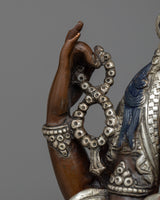 Chenrezig Silver Plated Statue | 12.9" Compassionate Deity of Bodhisattva