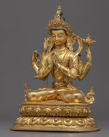 Himalayan Art Gold Gilded Chenrezig Tibetan Statue