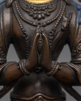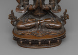 Bask in the loving presence of the Chenrezig Statue, which was made with great care and respect. This statue, which is composed of a combination of acrylic and gold paints over an oxidized copper body, communicates an infinity of Love and compassion. You will experience Chenrezig's loving embrace as you look at its calm face and elegant stance. Chenrezig is the Buddhist tradition's epitome of compassion.