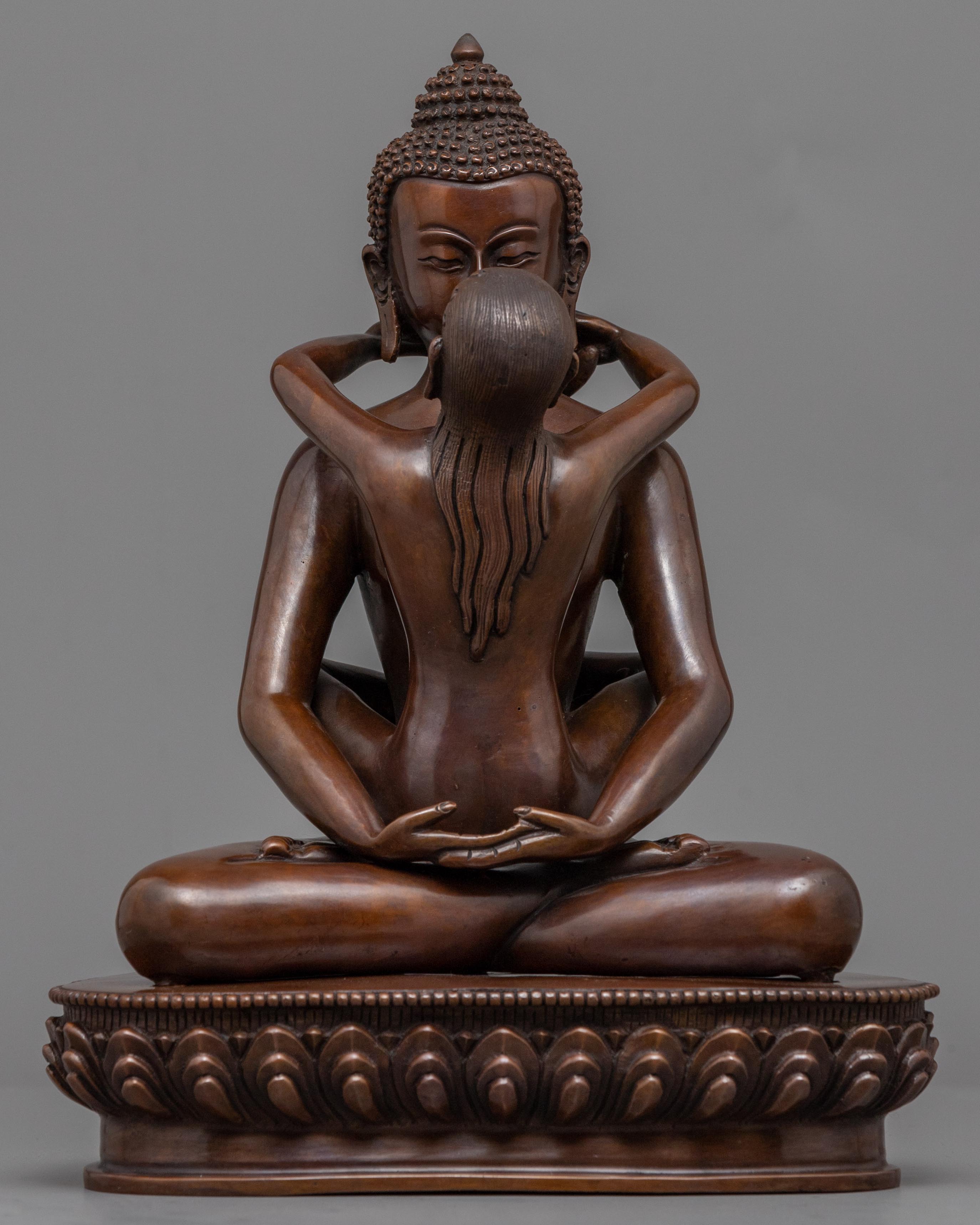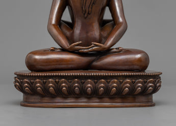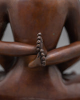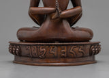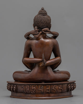We hand-carved the Statue Of Samantabhadra And Samantabhadri at our workshop for Nepalese Himalayan Art. We are a group of accomplished sculptors, and preceding generations have taught us our methods. This one-of-a-kind image shows Samantabhadra and Consort "Yab-Yum" reclining in the vajra stance in the sacred union position on a moon disc of lotus. In a contemplative stance, Samantabhadri is encircling Samantabhadra. Copper served as the statue's body material. We carved the complex characteristics of the deity using hammers and chisels.