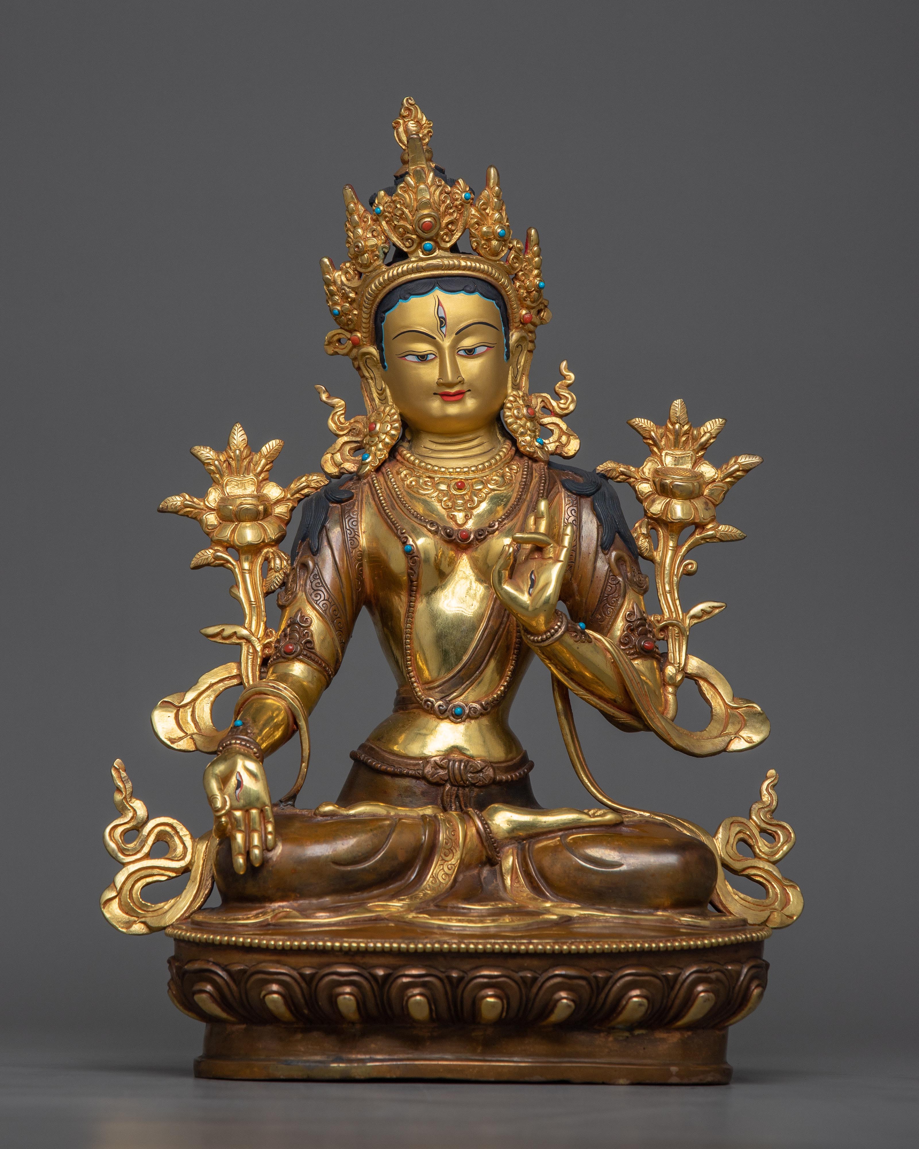 Copper White Tara Statue in 24K Gold | A Symbol of Compassion and Healing