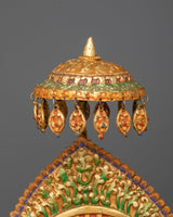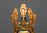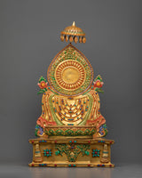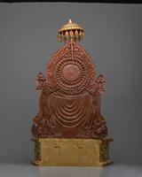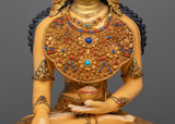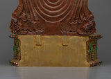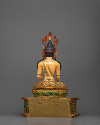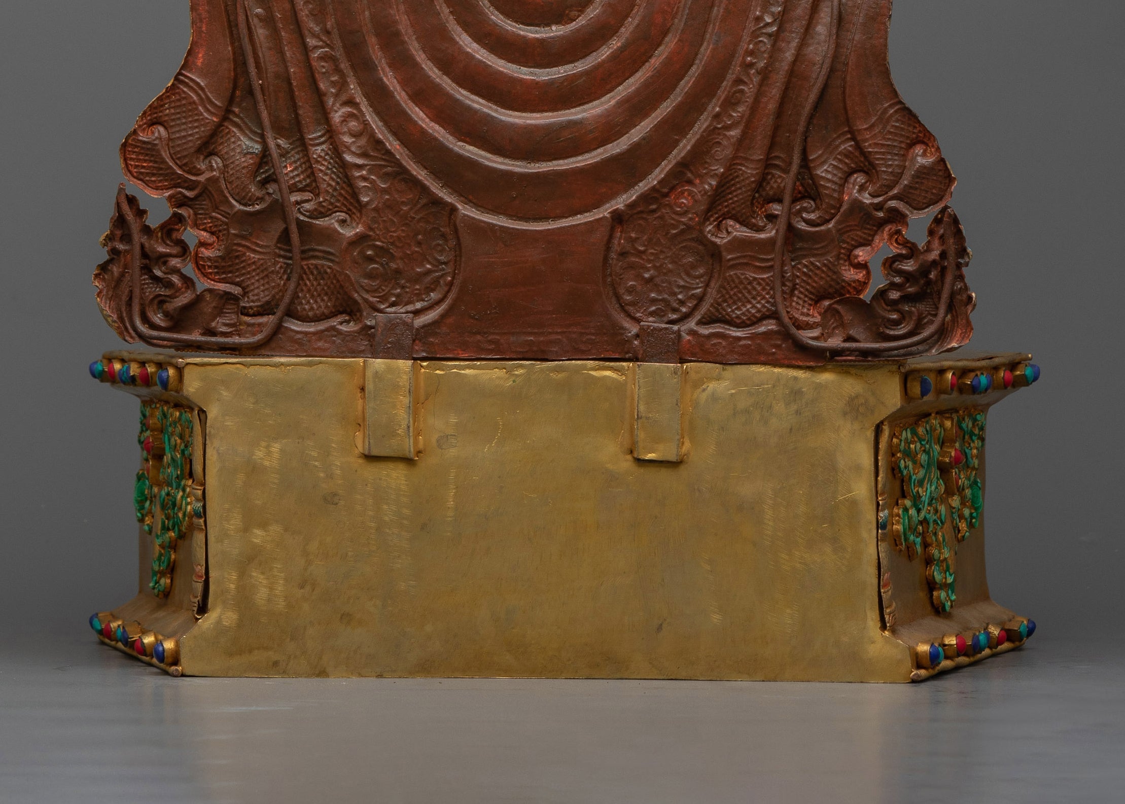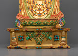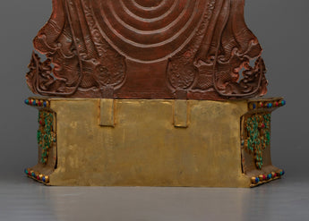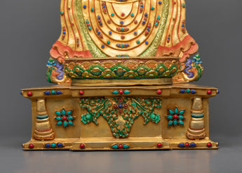The Coronet Shakyamuni Buddha Statue is a dazzling emblem of enlightenment that radiates majesty and grace. This figure, sitting atop a majestic throne and wearing a crown, represents the Buddha's celestial presence. It exudes tranquility and serenity since it was carefully handmade with a hand-carved gemstone, a copper body, 24K gold plating, and gold and acrylic paintwork. The Shakyamuni Buddha Statue serves as a focal point for introspection and spiritual devotion because of its magnificent craftsmanship and impressive size.