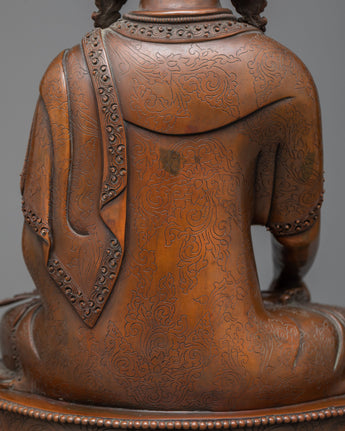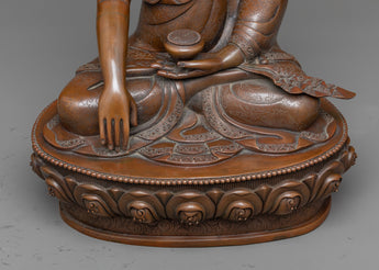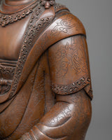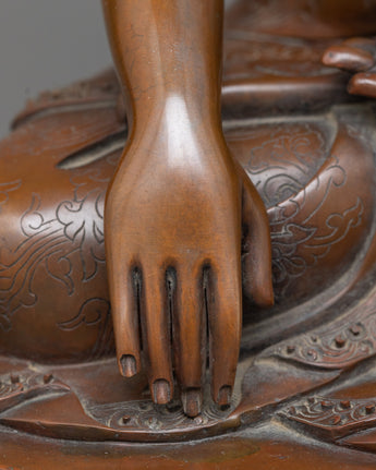 This statue's copper body, which was expertly crafted, gives it a classic charm. Its understated yet effective design fosters a contemplative and peaceful atmosphere, making it the ideal focal point for any meditation area. Accept the Shakyamuni Buddha's teachings into your day-to-day existence.