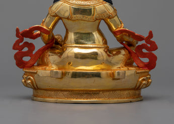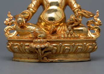 In Tibetan Buddhism, Dzambhala—also called the Deity of Wealth—is worshipped for his ability to grant wealth, eliminate impediments to financial prosperity, and promote the values of altruism and moral conduct. He frequently practices with the goal of reducing poverty and suffering, using monetary prosperity as a method of funding charity endeavors and spiritual practice. The Deity of Wealth Dzambhala Sculpture is a magnificent representation of Dzambhala that provides a material link to his altruistic energy and the shared yearning for wealth and well-being.