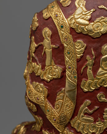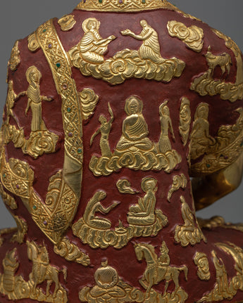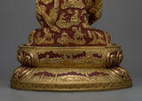 With our magnificent Dhyani Amitabha Buddha Statue, set off on a transforming path to enlightenment and embrace the limitless light of Amitabha. Carefully made with delicate gold and acrylic paints, 24k gold plating, and a copper body, This masterpiece was created with extraordinary skill and gleams with 24k gold plating. The elaborate paintings made of gold and acrylic capture Amitabha's calm demeanor and compassionate expression, which represent the Buddha's boundless love and wisdom. The sturdy foundation of the copper body represents solidity and anchoring for your spiritual journey.