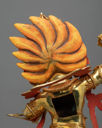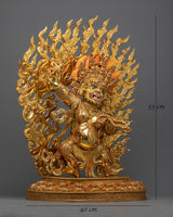 The Vajrapani statue, crafted from copper and adorned with 24K gold plating, radiates elegance and grandeur. With its noble posture and calm expression, it invites you to enter the divine presence of the Buddha and leads you to a deeper comprehension of the path to enlightenment. Diligently crafted by skilled artisans in Nepal, this statue is the epitome of divine beauty and artistic excellence.