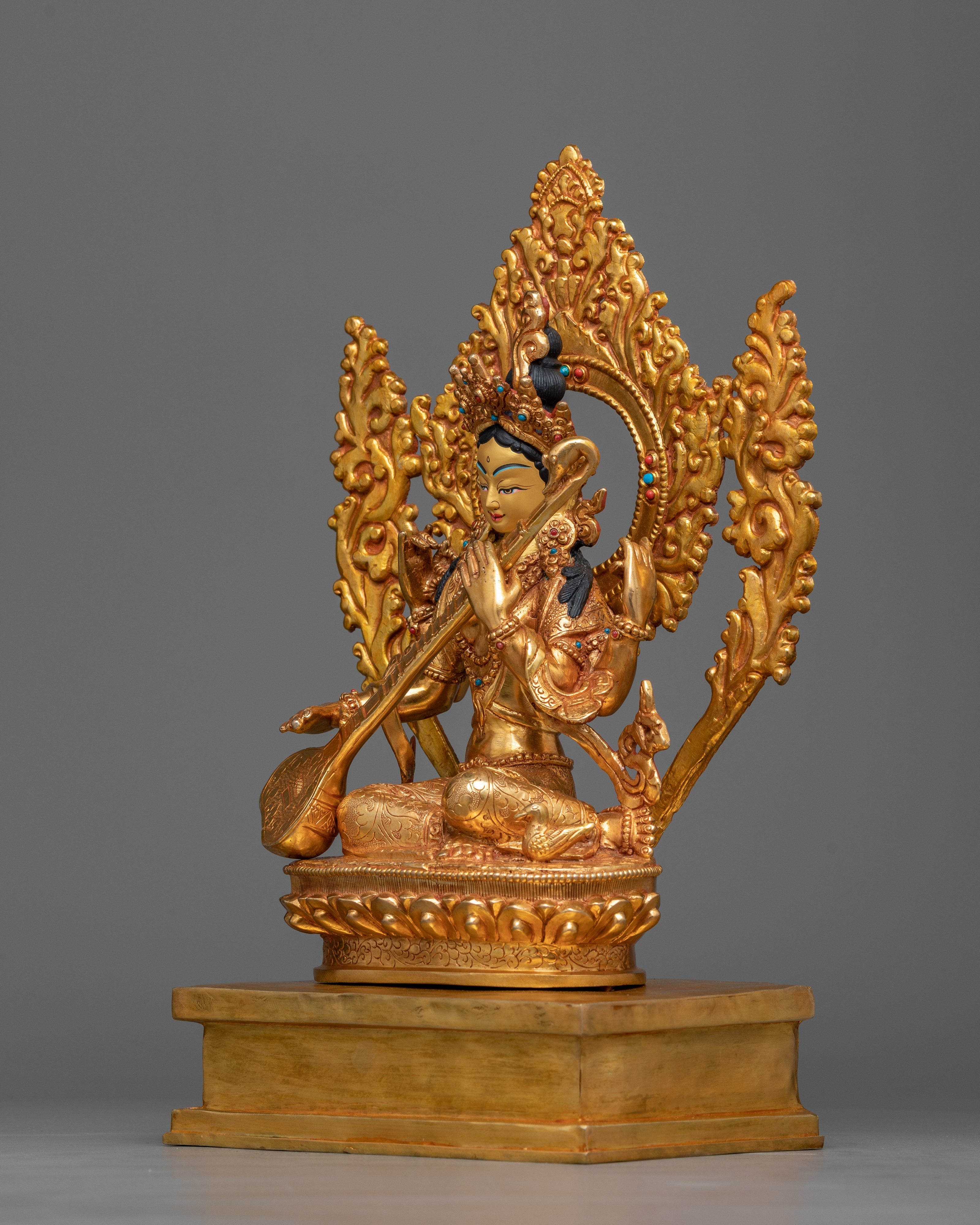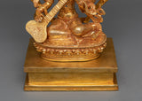 Divine Saraswati Copper Statue | 24K Gold Gilded Elegance