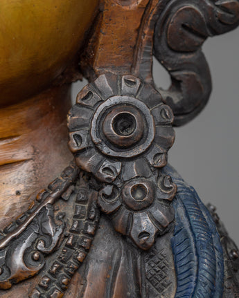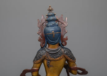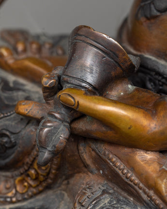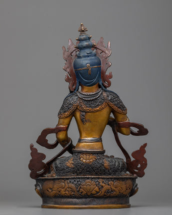With our Dorje Sempa meditation statue, you can embrace the transformational power of purification. The statue's earthy hues and patina, carved from an oxidized copper body, mirror the very process of metamorphosis it portrays. Each painstakingly made detail speaks of ancient traditions, encapsulating the essence of Dorje Sempa's commitment to removing karmic obscurations. Beyond being a work of art, this sculpture serves as a spiritual touchstone, inspiring sentiments of renewal, clarity, and spiritual rebirth with each meditative glance.