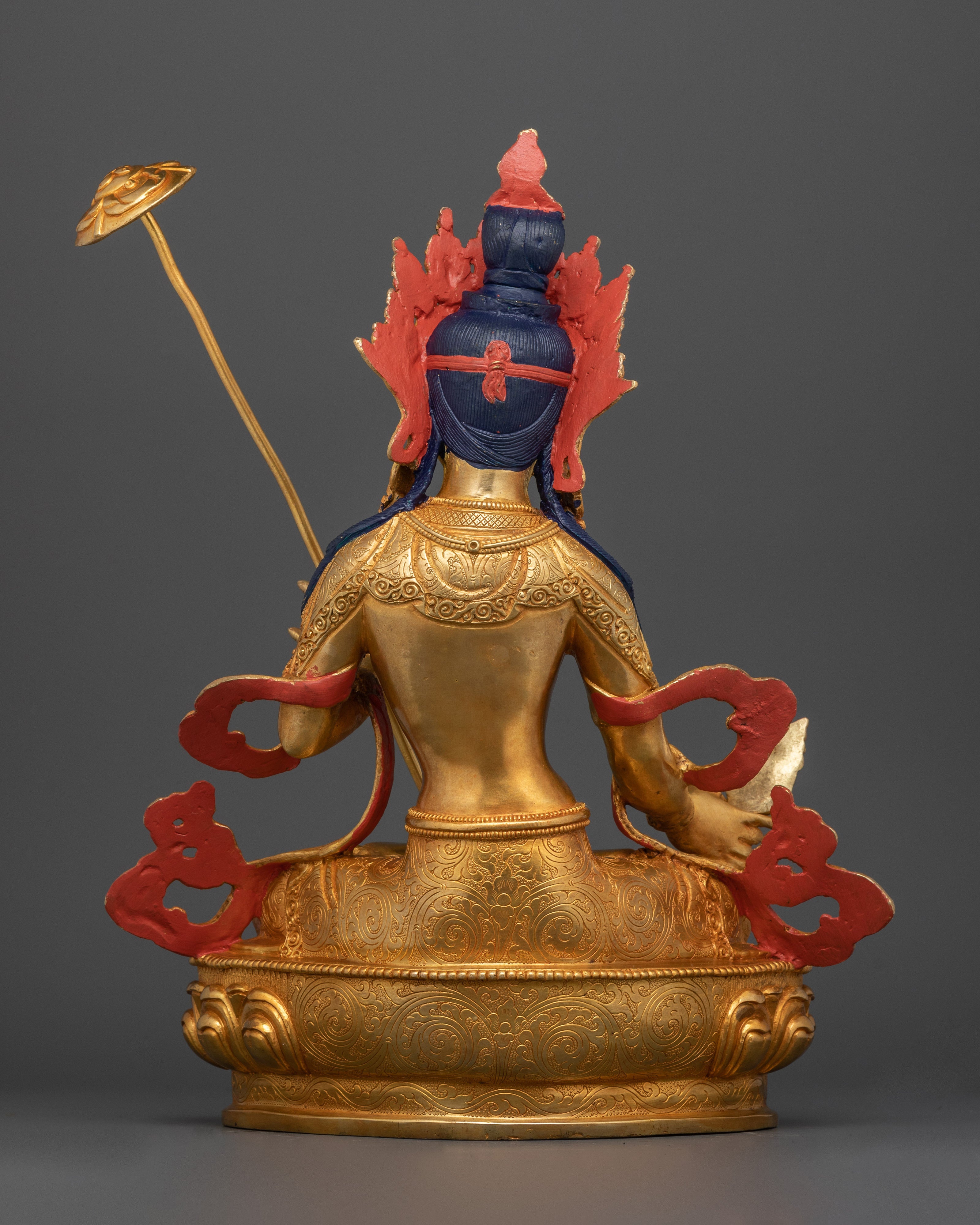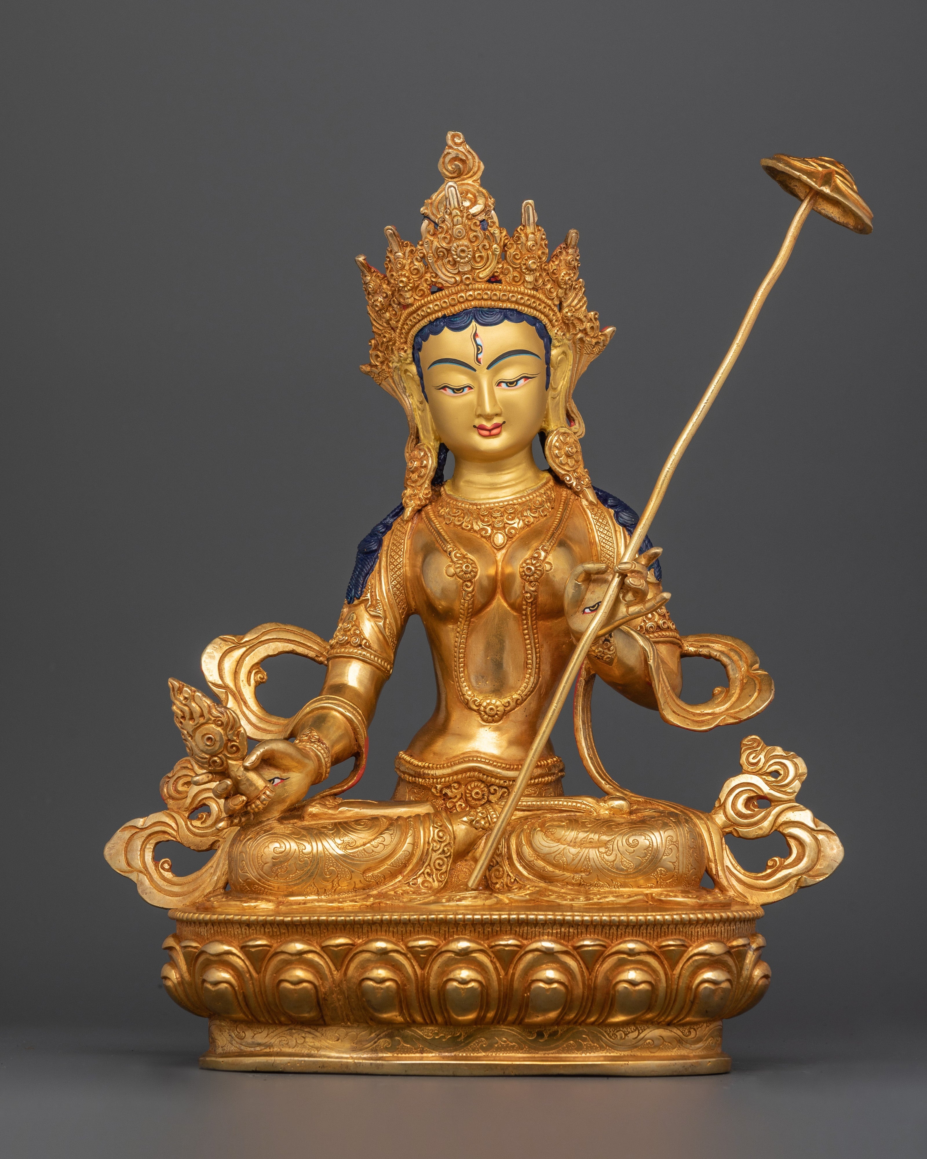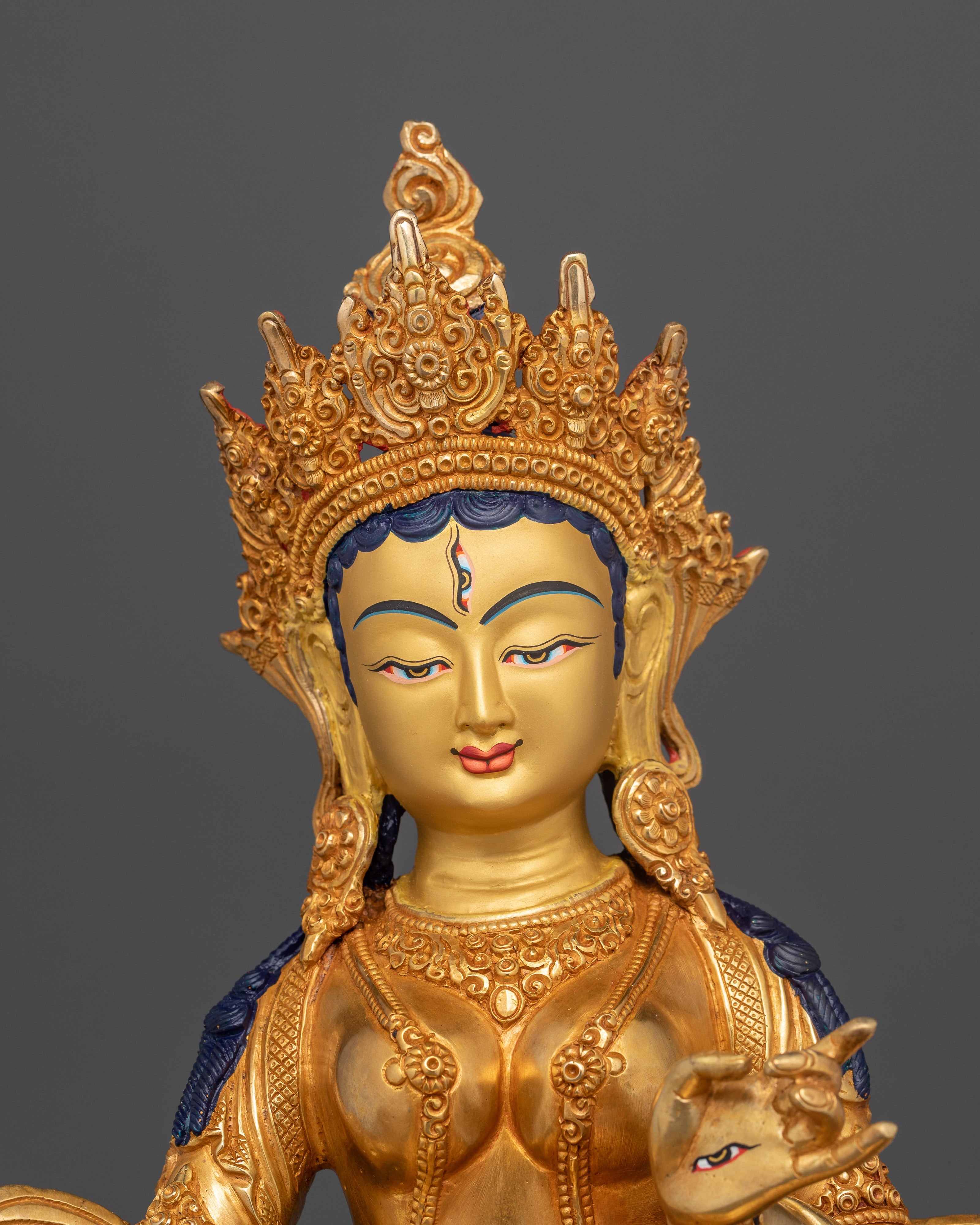 The White Umbrella Goddess, or Dukar, is adored in Tibetan Buddhism for her strong capacity to protect practitioners from harmful influences and impediments. Her tranquil and protecting presence is thought to provide spiritual safety and blessings, making this statue an ideal addition to any altar or meditation space.