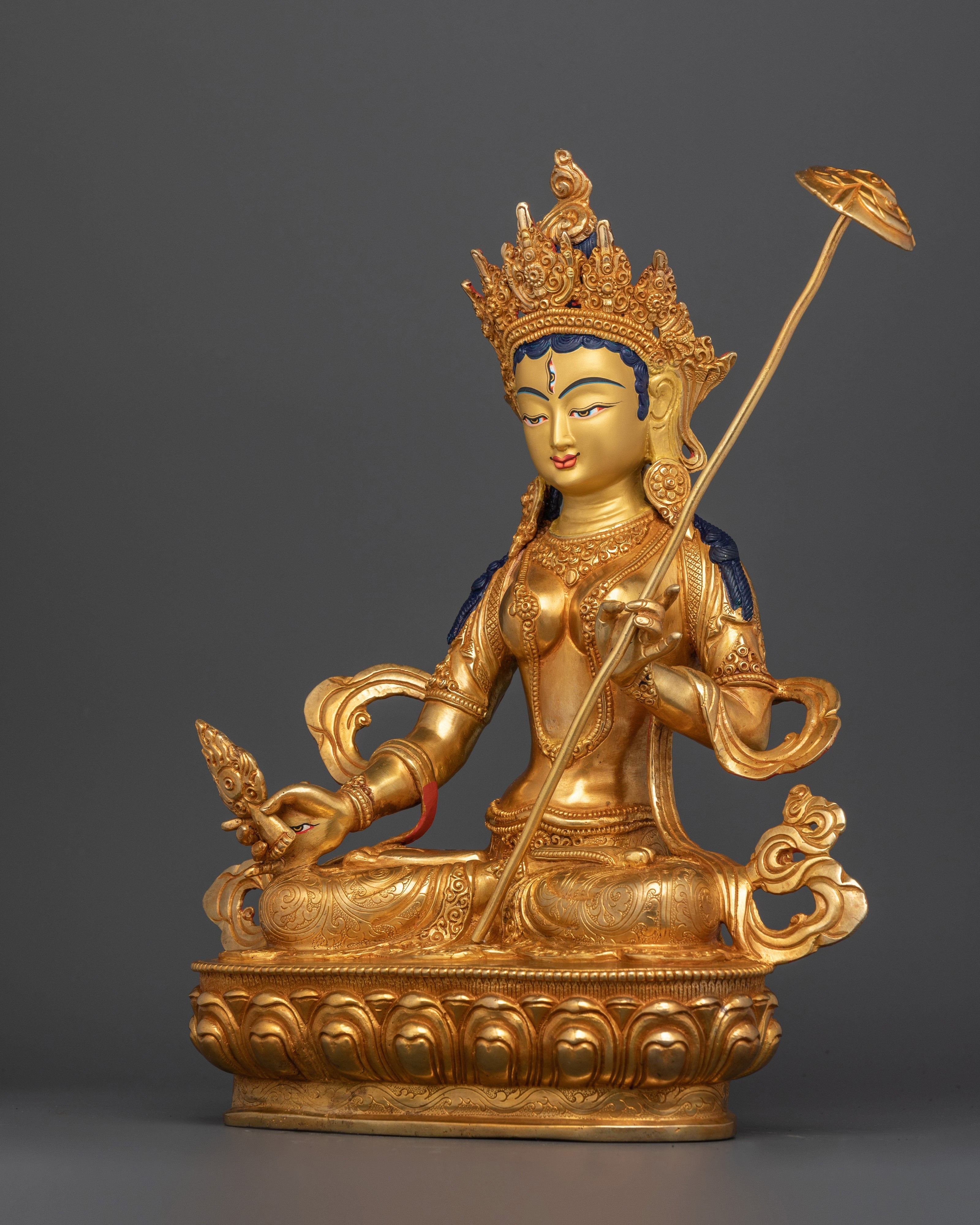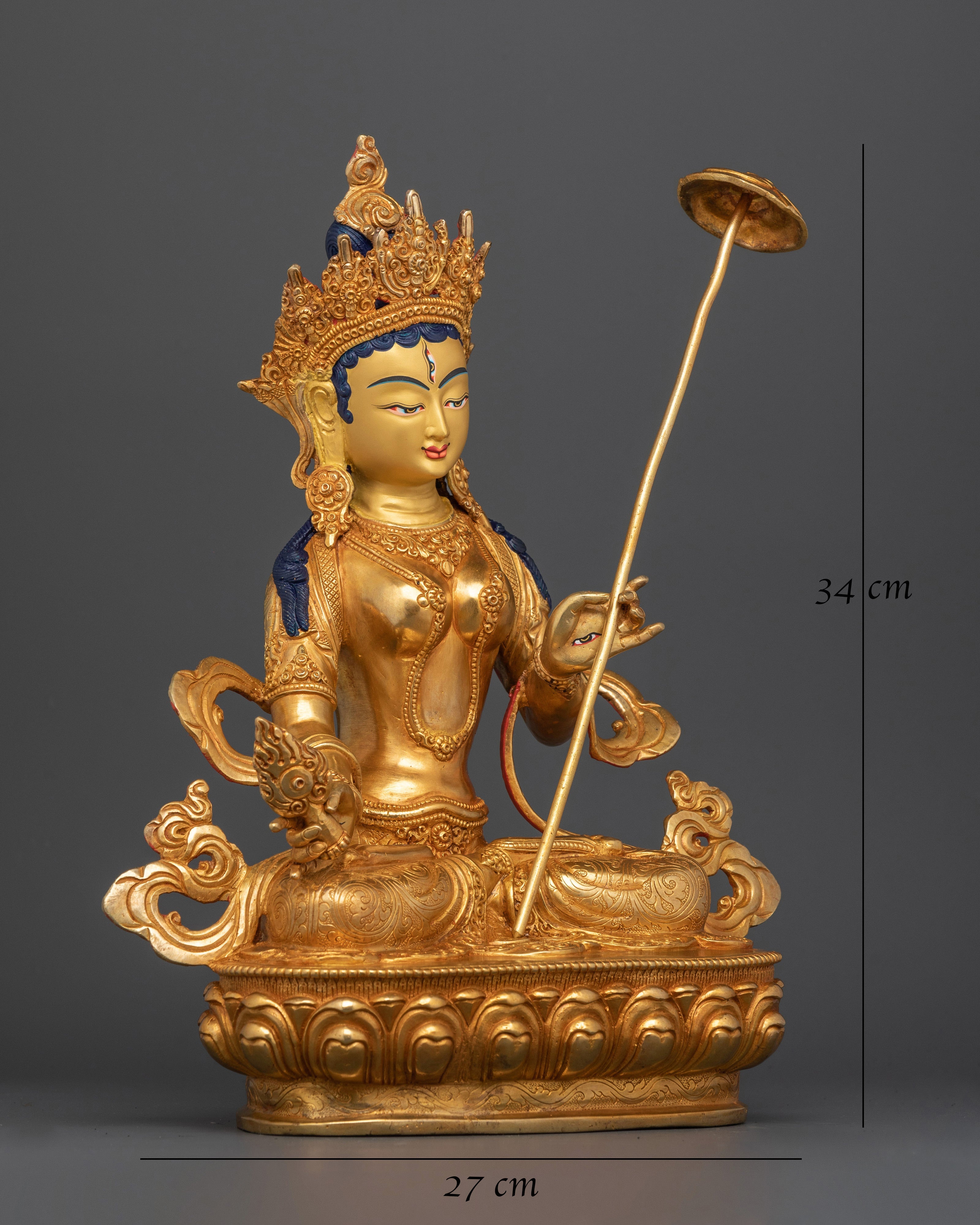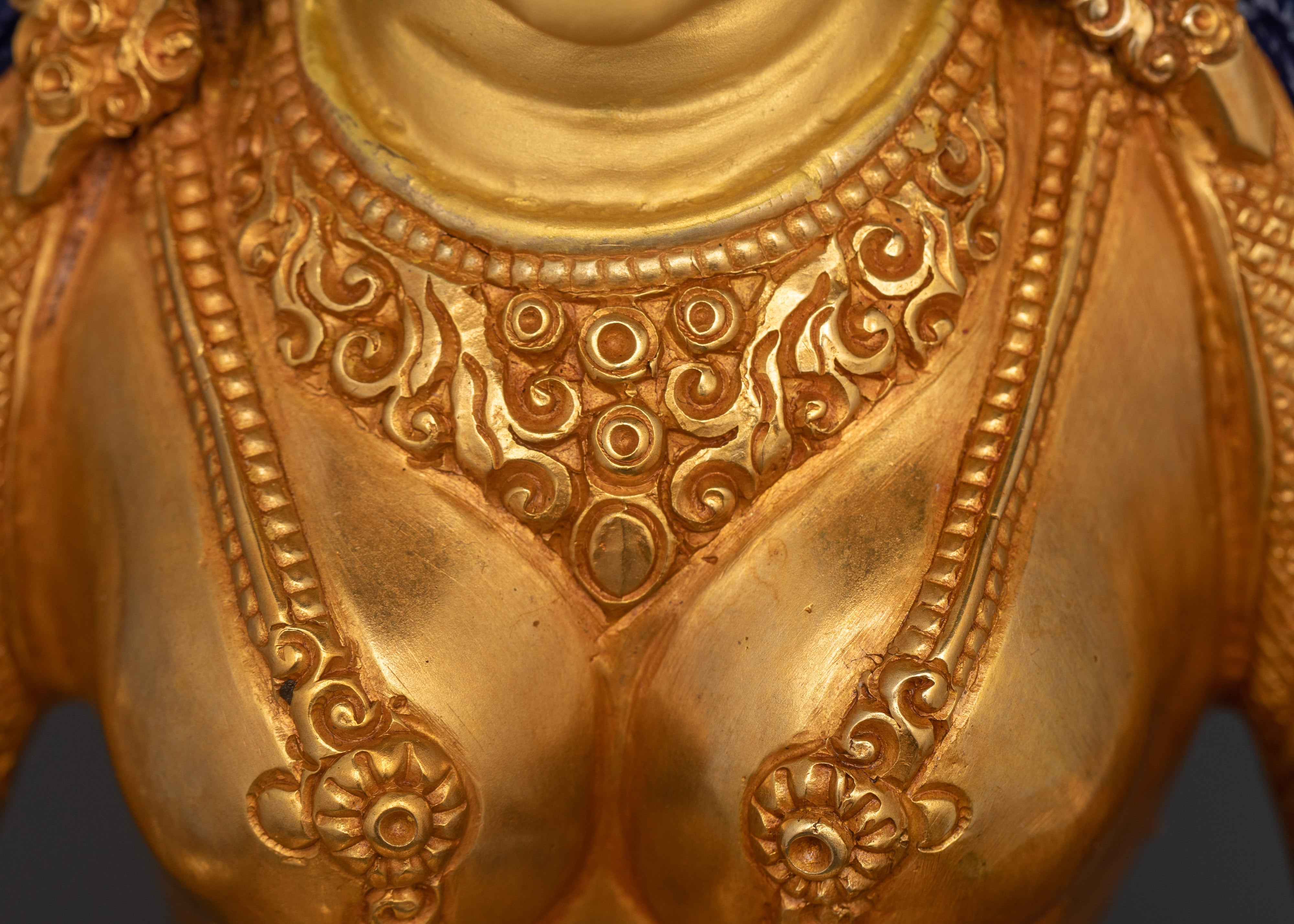 The White Umbrella Goddess, or Dukar, is adored in Tibetan Buddhism for her strong capacity to protect practitioners from harmful influences and impediments. Her tranquil and protecting presence is thought to provide spiritual safety and blessings, making this statue an ideal addition to any altar or meditation space.