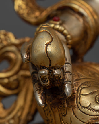 Immerse in the Opulence of Gold Gilded, Handcrafted Tibetan Symbolism with Kuber Murti