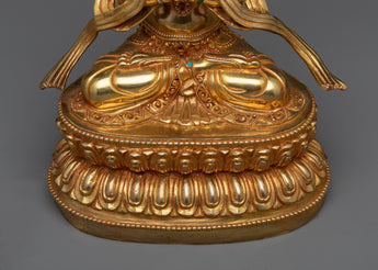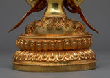This masterpiece, which was created with remarkable workmanship, sparkles with the brilliance of 24k gold plating. The elaborate paintings made of gold and acrylic capture Lokesvara's calm demeanor and compassionate expression, which symbolize the Buddha's boundless love and knowledge. The grounding principle that underpins the path of enlightenment is represented by the copper body, which offers a strong foundation.