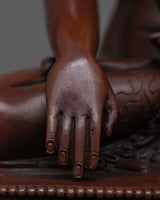 The oxidized copper body of the statue brims with timeless charm. Its distinct patina expresses Shakyamuni's ageless wisdom and teachings. Our Nepalese artisans' artisanal ability shines through in each precisely hand-carved detail, embodying a story of self-discovery and spiritual awakening. Despite the absence of extra frills, the oxidized copper statue exudes a simple yet profound style.