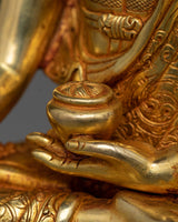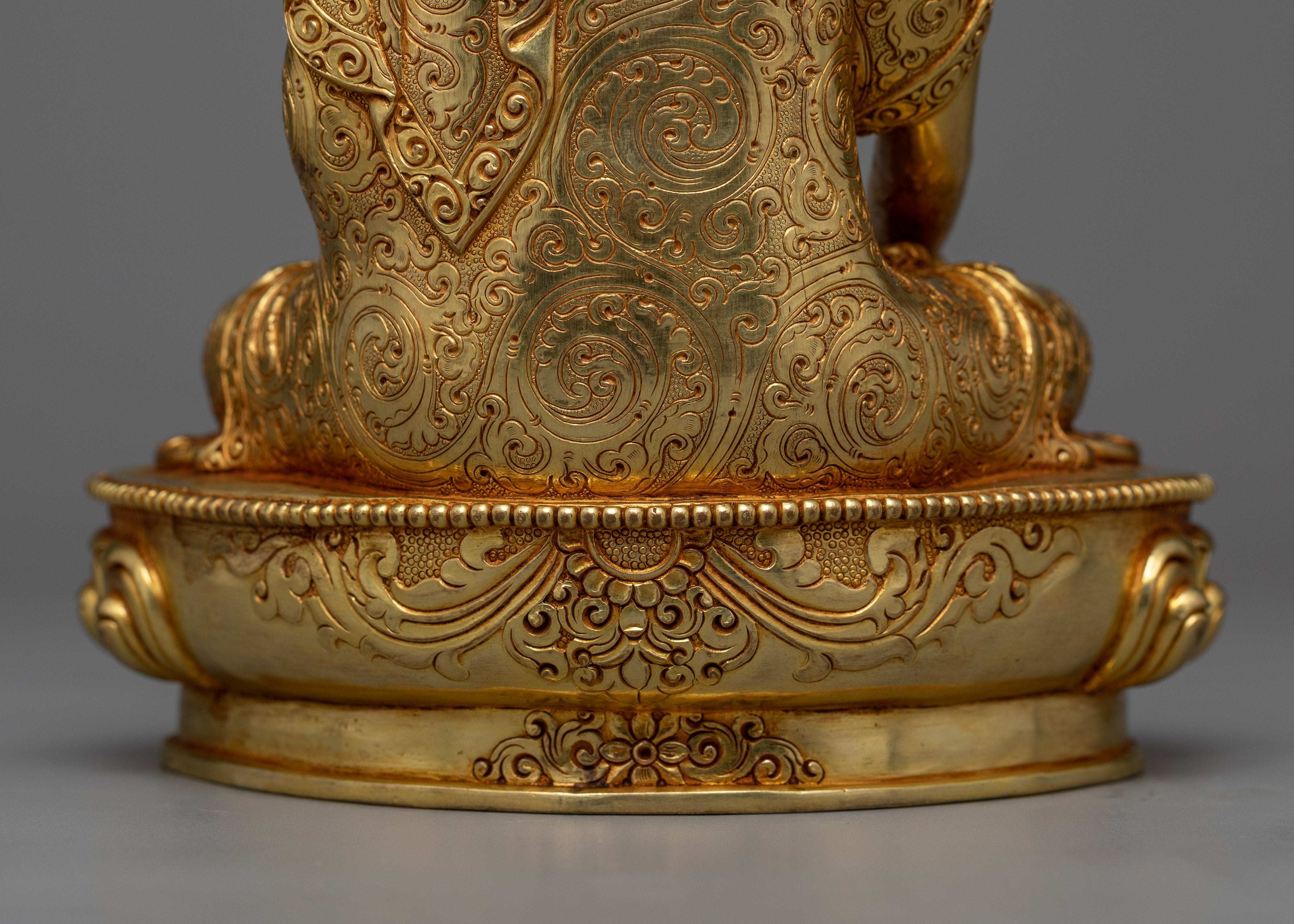 Immerse yourself in a realm of calm and enlightenment with our Shakyamuni Buddha Statue, an artwork created to instill spiritual serenity in your environment. The statue is painstakingly carved and features a stunning 24K gold gilding that emits a warm, inviting glow. The use of gold and acrylic paintings on a copper body not only adds to the statue's visual appeal but also represents the rich heritage and profound wisdom of Buddhist teachings.