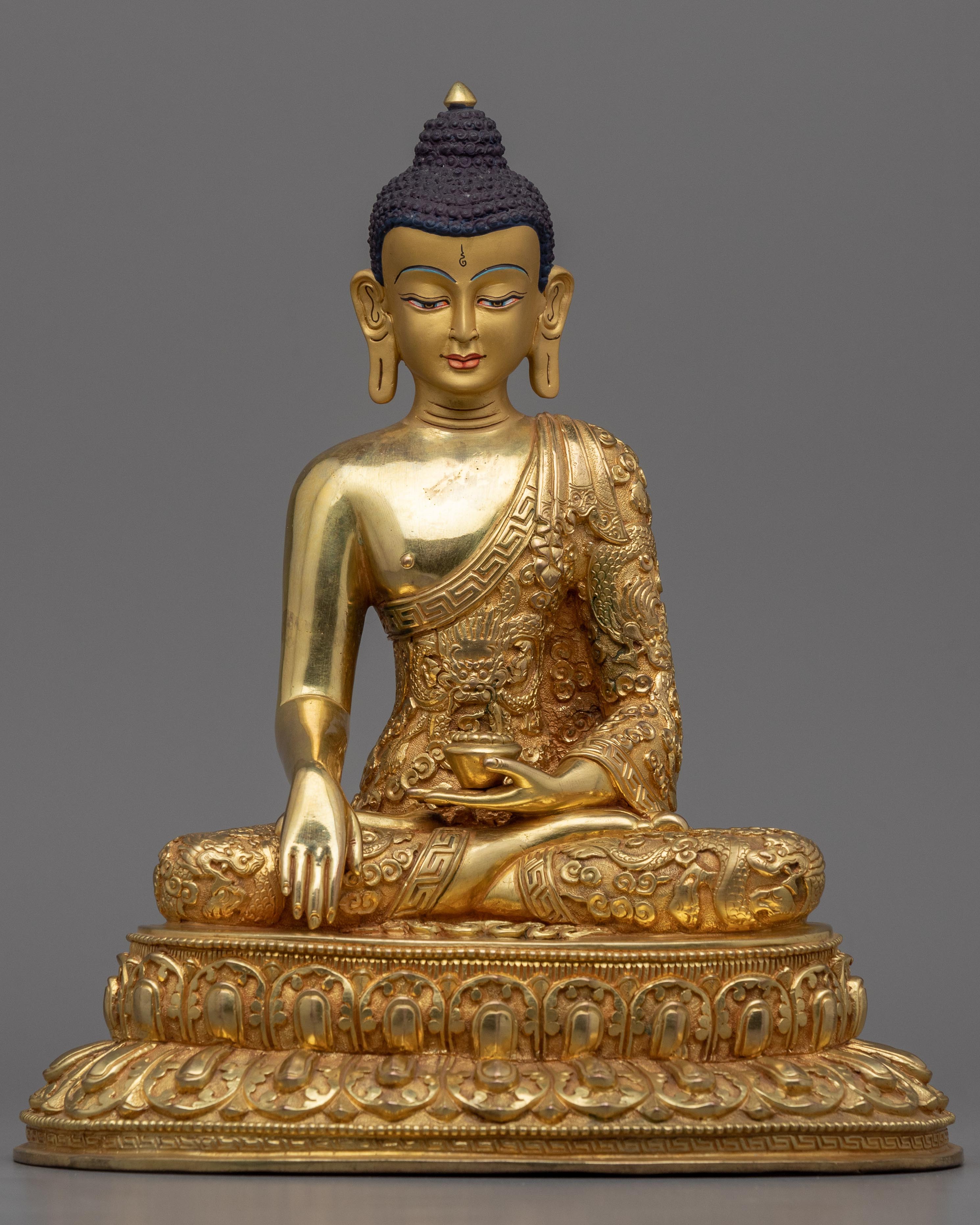 The historical Buddha, Siddhartha Shakyamuni, is the originator of Buddhism and the model for innumerable practitioners all over the world. This magnificent statue honors his remarkable journey from a pampered prince to the Buddha, portraying the essence of his inner spiritual development.