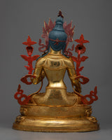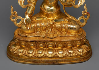 This gorgeous item was meticulously crafted from durable copper, embellished with 24k gold gilding, and accented with exquisite acrylic paints. Hand-carved gemstones adorn the statue, adding to its appeal and elegance. This White Tara statue is a sign of divine femininity as well as a call to nurture compassion, peace, and longevity in our life.