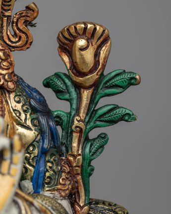 Embrace the beautiful feminine spirit with our lovely Female Buddhist Goddess statue. This statue oozes grace and empowerment, standing 8.6 inches (22cm) tall with a 6.2-inch (16cm) base. This statue, created with the highest care and devotion, has a copper body covered with exquisite 24k gold gilding and delicate 24k gold and acrylic paintwork. The brilliant splendor of this artwork gives a sense of elegance and devotion to any religious setting.