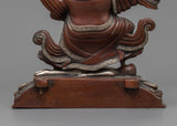 Known for his intimidating features and black skin, Mahakala Bernagchen is portrayed in a dynamic position. His weapons and symbolic decorations signify his dedication to defending Buddhist teachings. The statue’s detailed artistry, from the wrathful expression to the intricate carvings of his attire, reflects the depth of Mahakala's protective wrath and unwavering vigilance.