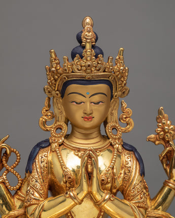 Four Armed Chenrezig | Tibetan Avalokiteshvara Gold Plated Statue