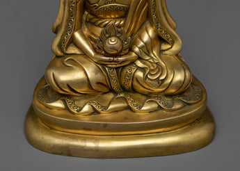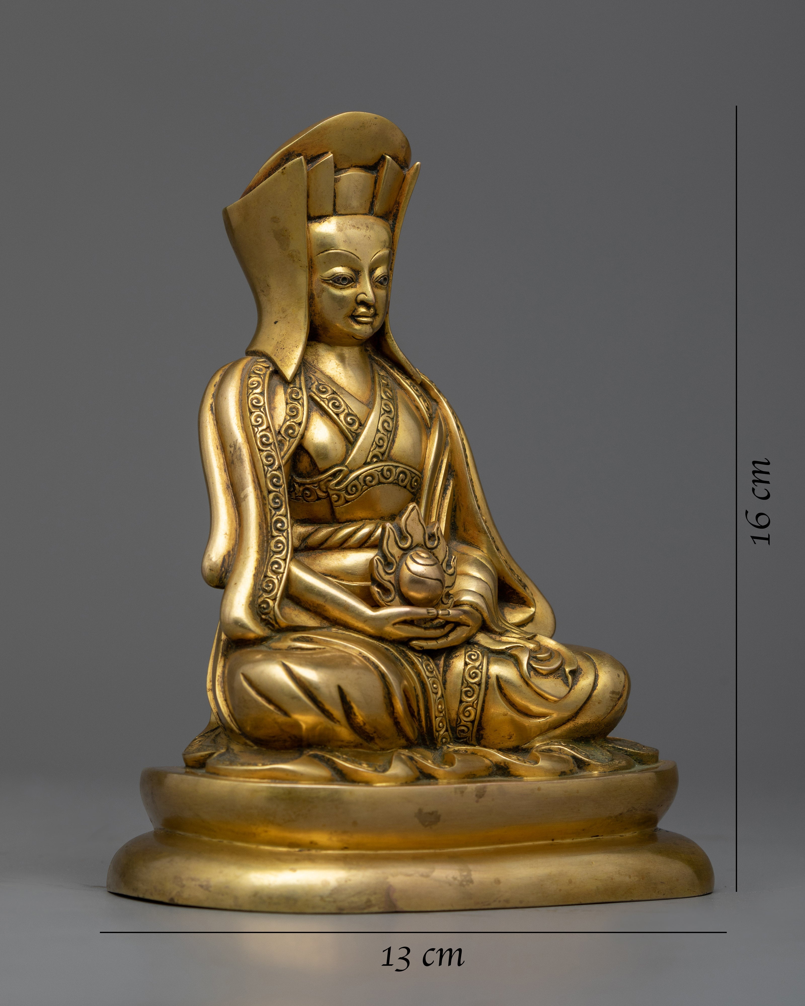 Each curve, contour, and detail on the statue demonstrates the craftsmanship and dedication that went into its production. This statue will certainly elevate any spiritual space, shrine, or meditation area, with its glittering gold finish reflecting the depth of Gampopa's teachings, making it a conversation piece for both the seeker and the aesthete.