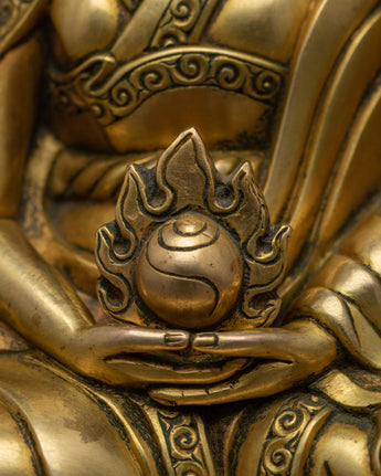 With our Gampopa statue, you can experience a fusion of spirituality and craftsmanship. This statue honors Gampopa's teachings and legacy as one of the foundational figures in Tibetan Buddhism. The robustness of the copper body is elegantly matched with the shine of the 24k gold gilding, making it both a spiritual icon and an artistic marvel.