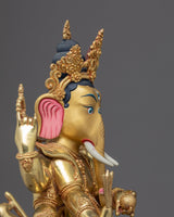 Hand-Carved Ganesha Statue Gilded with 24k Gold