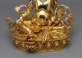 With our God of Fortune Dzambhala Statue, which is delicately sculpted to bring abundance into your life, you can embrace the blessings of wealth and prosperity. This statue, which measures 11.4 inches in height and 9.4 inches in width at the base, exudes wealth and material prosperity. This statue was carefully and fervently crafted using the finest materials, such as copper that has been gilded in 24K gold and elaborately painted in both gold and acrylic. Everything about it, from the graceful posture to the calm demeanor, exudes the heavenly energy of riches and money, guiding you in the direction of financial fulfillment.