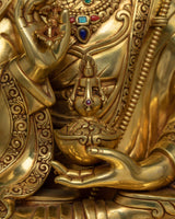 Gold Gilded Guru Rinpoche Statue | Hand-Carved Gemstone, 24K Gold Gilded