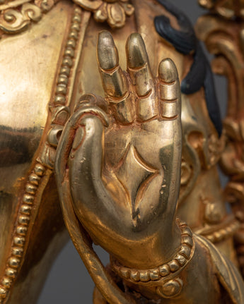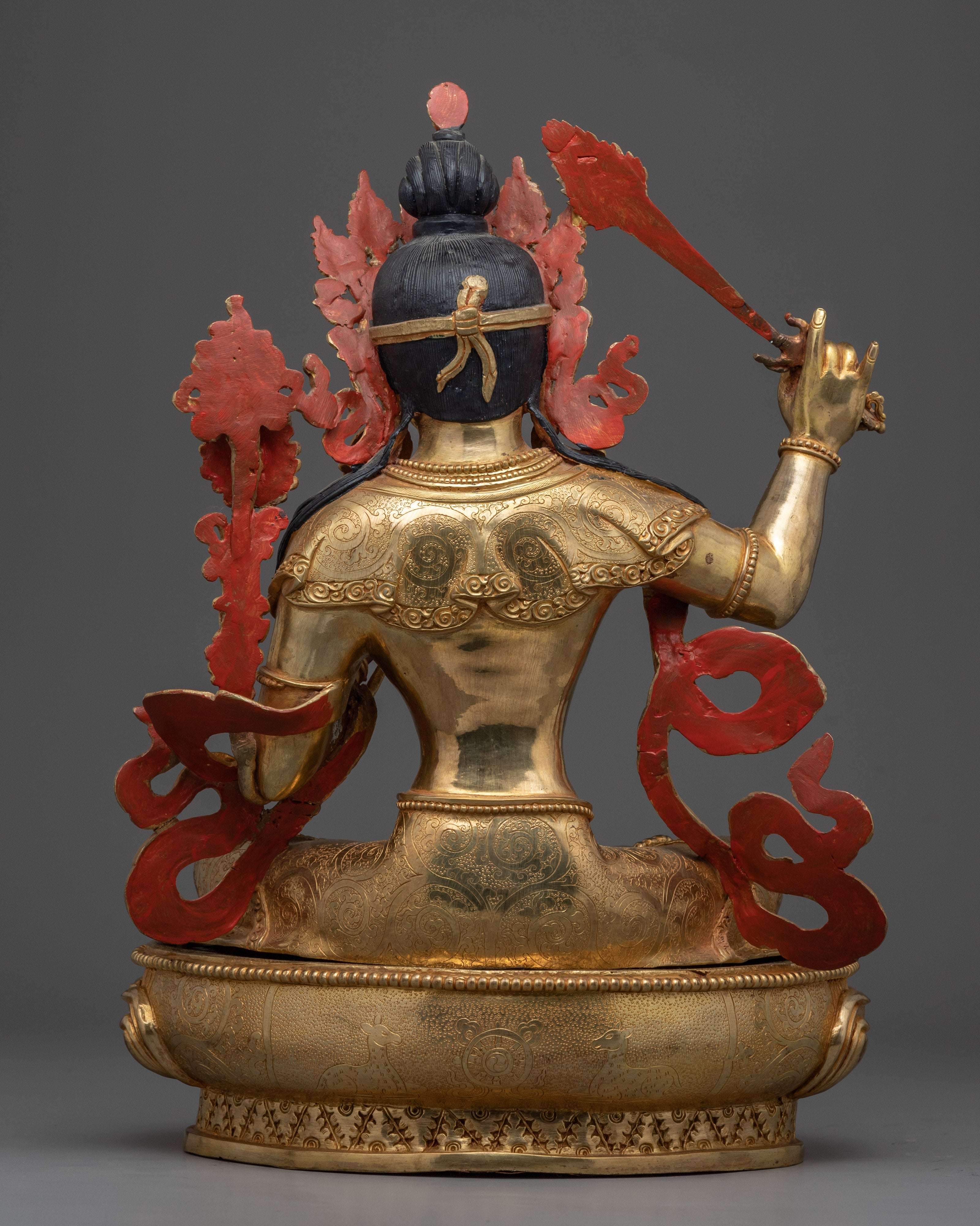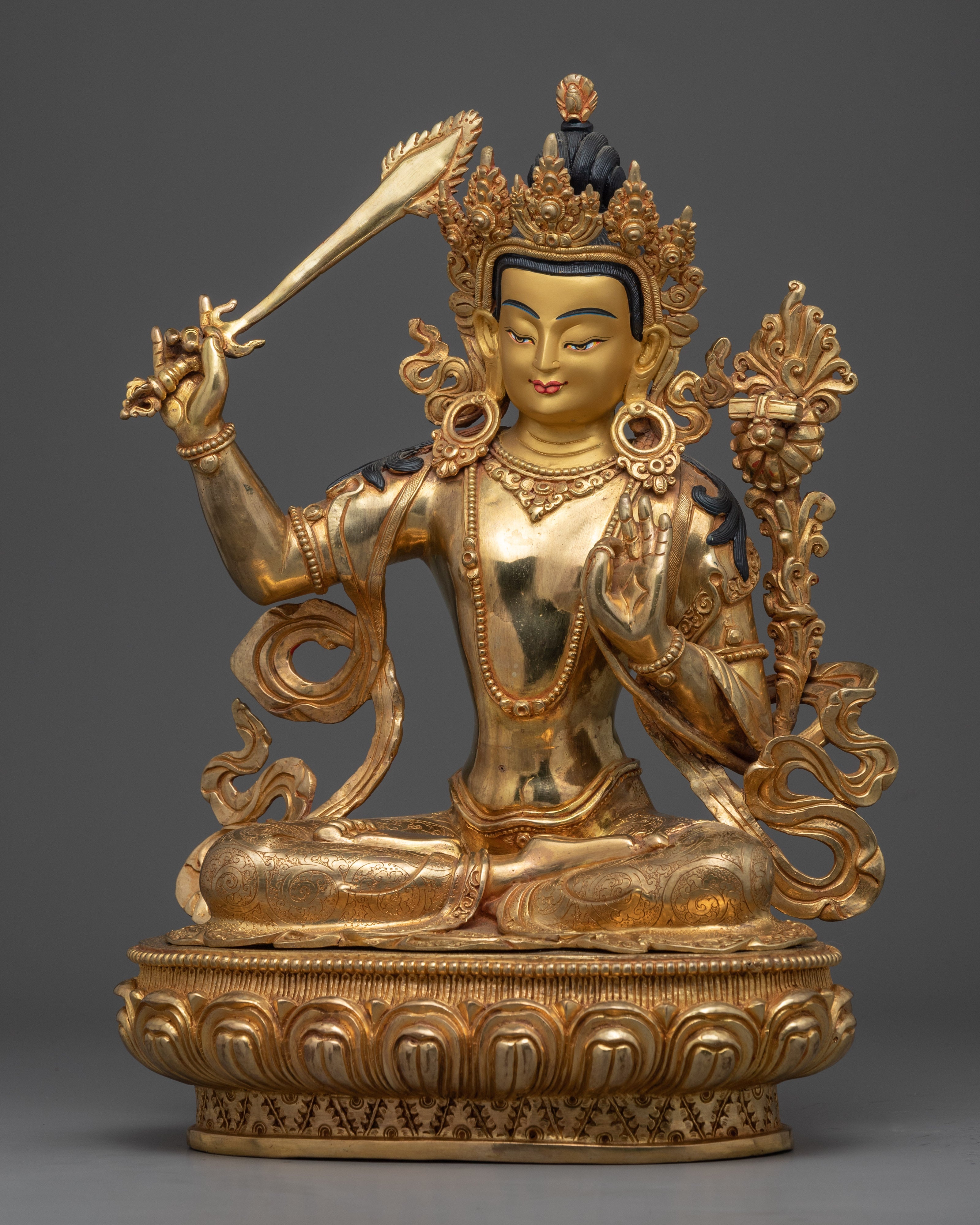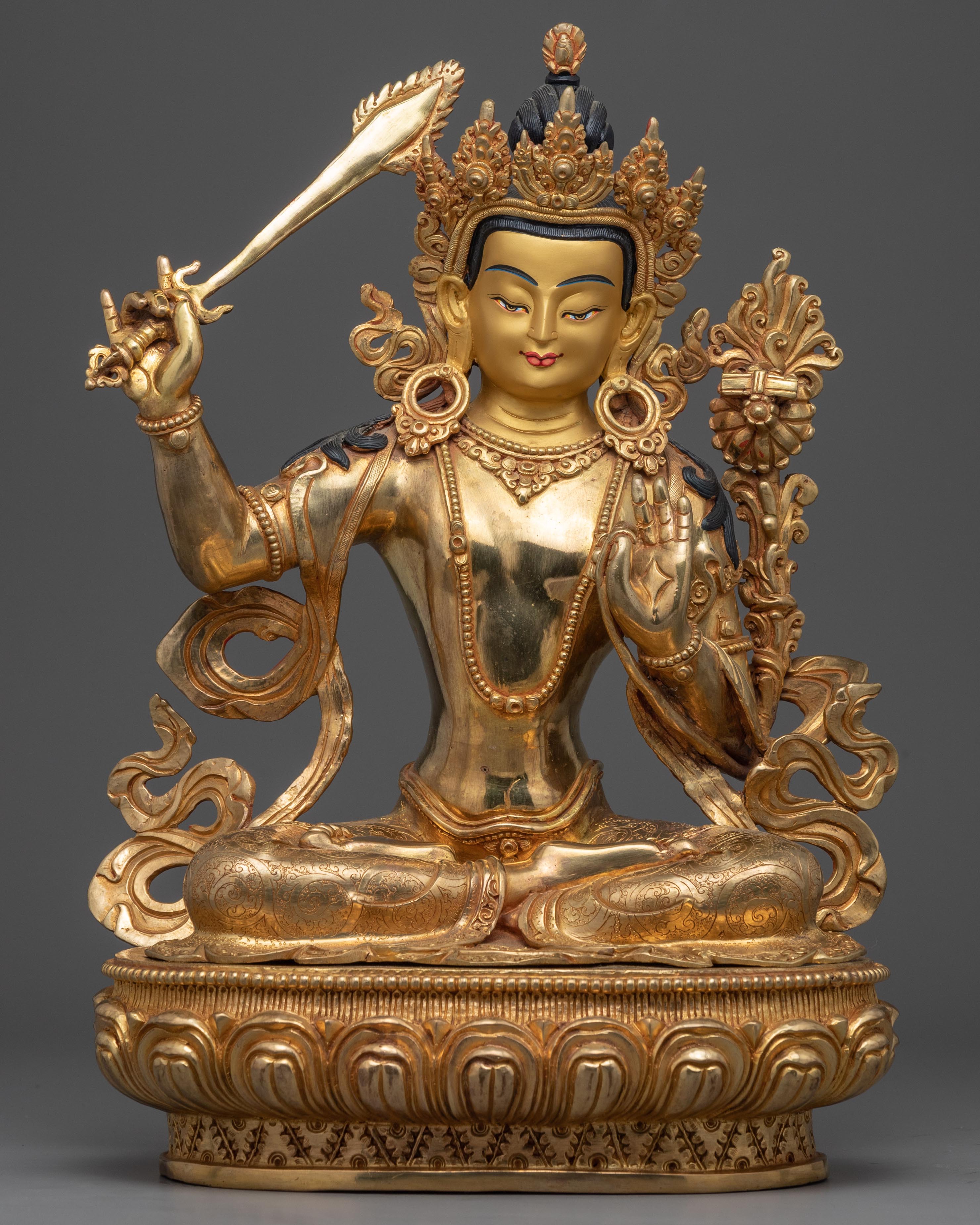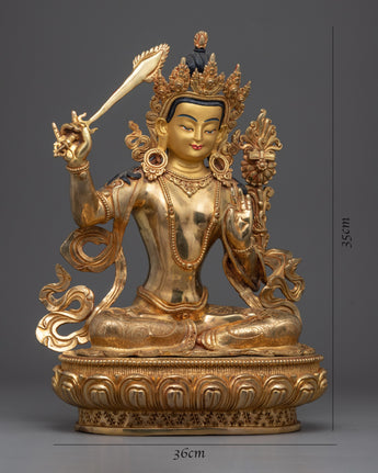 Gold Gilded Manjushri Meditation Practice Statue | Traditional Bodhisattva Art