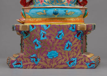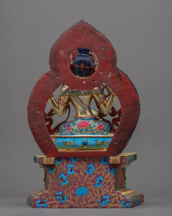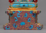 The Gold-Gilded Saraswati Statue for Sale was expertly hand-sculpted in Nepal using traditional Himalayan techniques. The deity is seen sitting on a lotus with a vina in her hand and with a serene face. The figure was crafted from copper and covered in real 24K gold. Precious gemstones are used as embellishments on the body jewelry and the crown. We worked incredibly hard for months, molding, hand-carving intricate designs, and gliding with gold in our studio. We can assure you that the statue was made from only the best materials. We used a hammer and small chisels to hand-carve the intricate design patterns. To do delicate carvings, artists must have decades of experience as he has to create intricate design patterns on a small surface area.