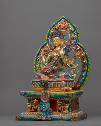 Traditionally Gold-Gilded Saraswati Statue for Sale