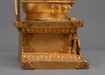 Gold-Gilded Statue For Saraswati Prayer | Buddha Dakini Seated On Throne Sculpture