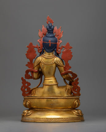 This handcrafted Golden Green Tara Statue, created by skilled Nepali artisans, will add beauty and spirituality to any setting. With careful detailing and a bright golden finish, this statue is the ideal reminder of compassion, protection, and wisdom for your home or business. This magnificent jewelry will bring divine power into your life.