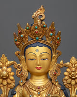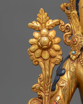 Handcrafted Golden Statue of Green Tara, Mother of Compassion, Female Buddha