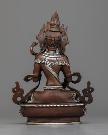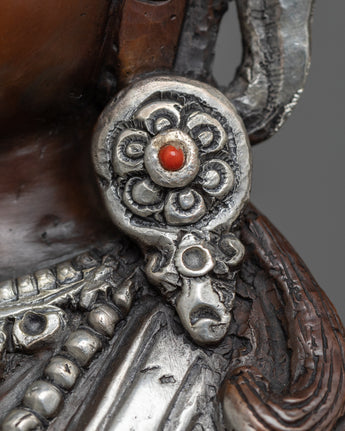 With our Arya Saraswati statue, you may immerse yourself in the world of knowledge and the arts. This delicately made statue of the goddess of knowledge and learning is a lovely addition to any room. The oxidized copper body, along with the exquisite silver plating, creates a balanced combination of tradition and elegance. With its intricate craftsmanship, this statue encapsulates the essence of Saraswati, making it a great piece for scholars, artists, and spiritual searchers alike. The Arya Saraswati statue adds a touch of inspiration and calm to a study, meditation space, or as part of your home decor, acting as a reminder of the power of wisdom, creativity, and the quest of knowledge.