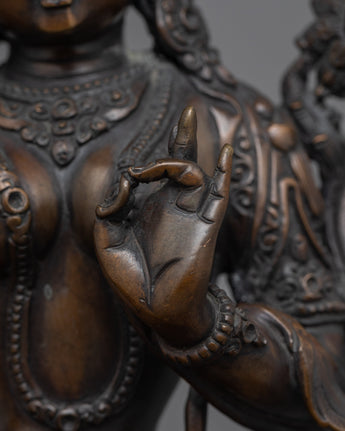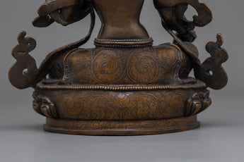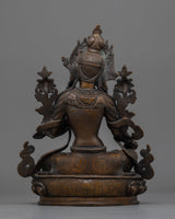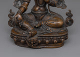 As a sign of protection and enlightenment, the Green Arya Tara Statue is a lovely addition to any sacred place. This magnificent statue, made of an oxidized copper body, invites you to connect with the compassionate energies of Arya Tara by emanating a calm and wise aura. This statue is a source of spiritual protection and guidance because of its exquisite workmanship and graceful design.
