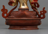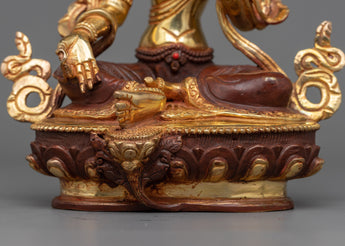 This beautiful depiction of the Green Tara 9 9-inch statue is a perfect representation of the compassionate female Buddha. Intricately carved from copper alloy, the beautiful detail and craftsmanship of this statue make it a great addition to any Buddhist altar.