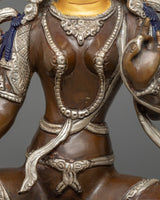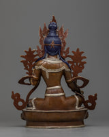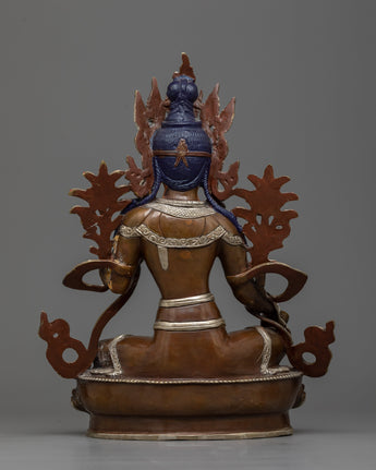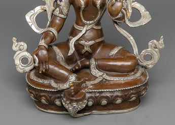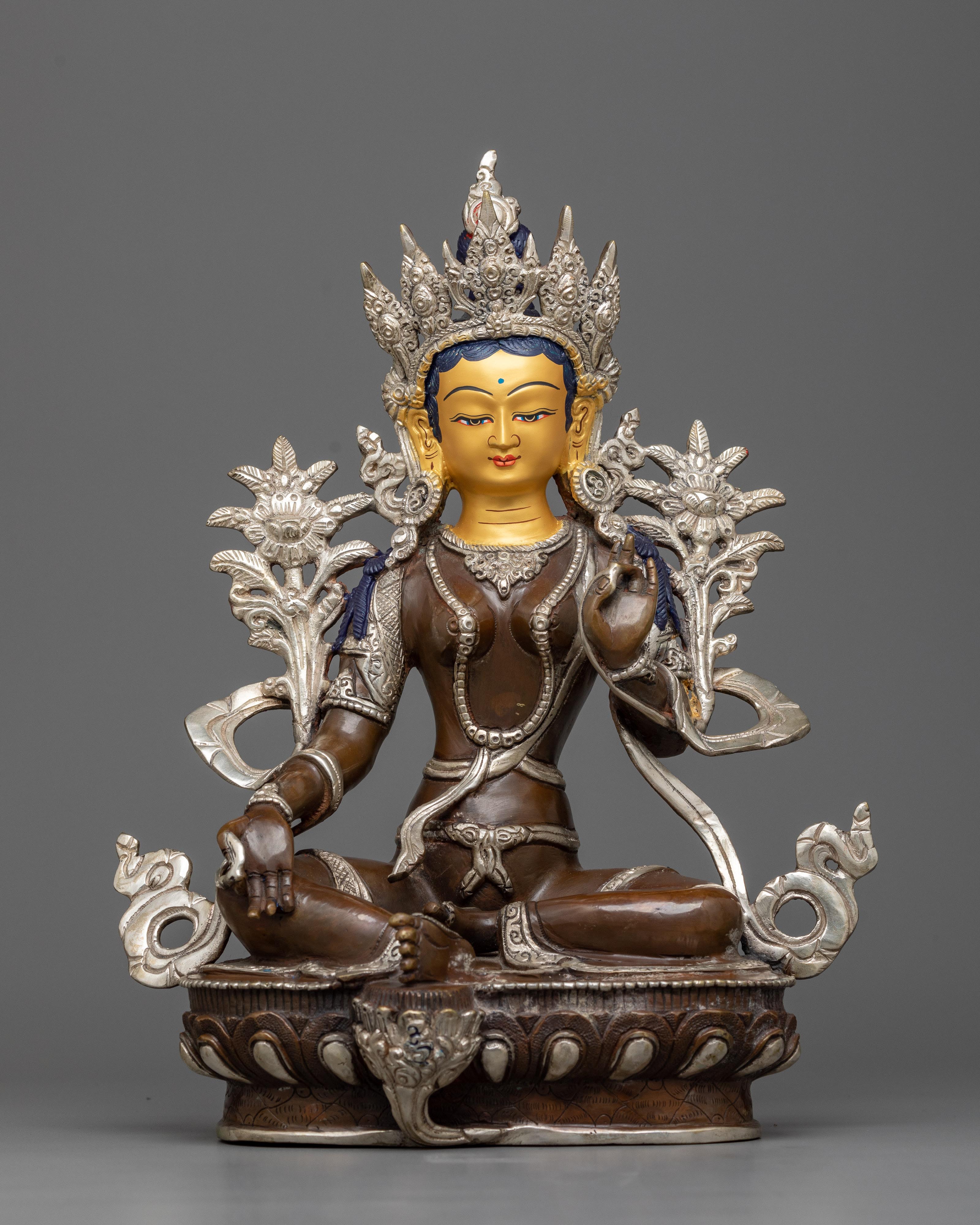 Green Tara Buddha Statue | Silver & Gold Harmony in Oxidized Copper