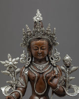 Green Tara Copper Sculpture | Tibetan Art Plated with Silver
