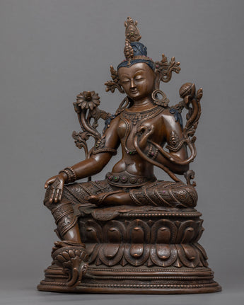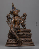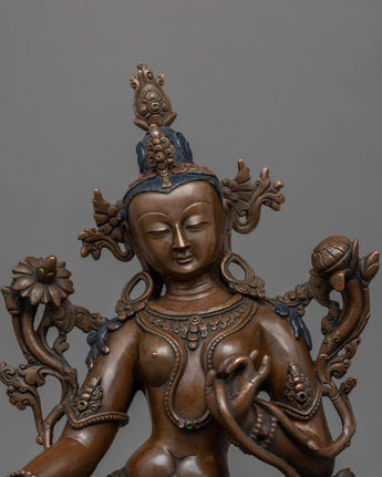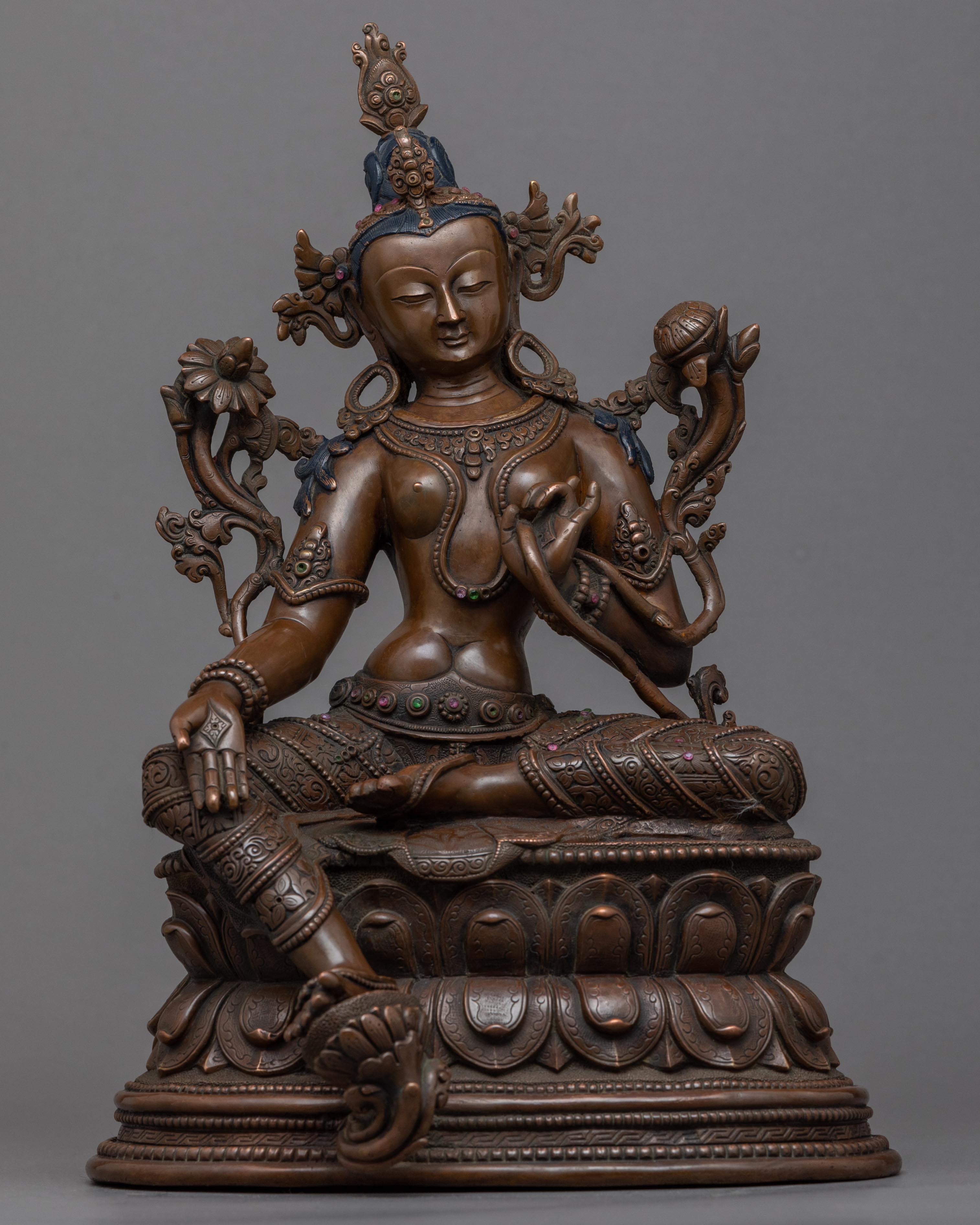 Green Tara Copper Statue | Traditionally Hand-Carved Mother Tara Artwork