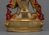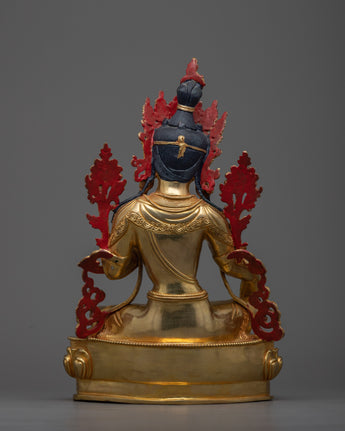 Our Green Tara goddess sculpture, an artistic marvel that reverberates with protection, compassion, and divine intervention, will enhance your spiritual refuge. This figure, clad in bright 24k gold and enhanced by precise acrylic paintings, embodies Green Tara's steadfast generosity and quick action. The solid copper body, emphasized by its dazzling polish, is a tribute to perseverance and outstanding craftsmanship.