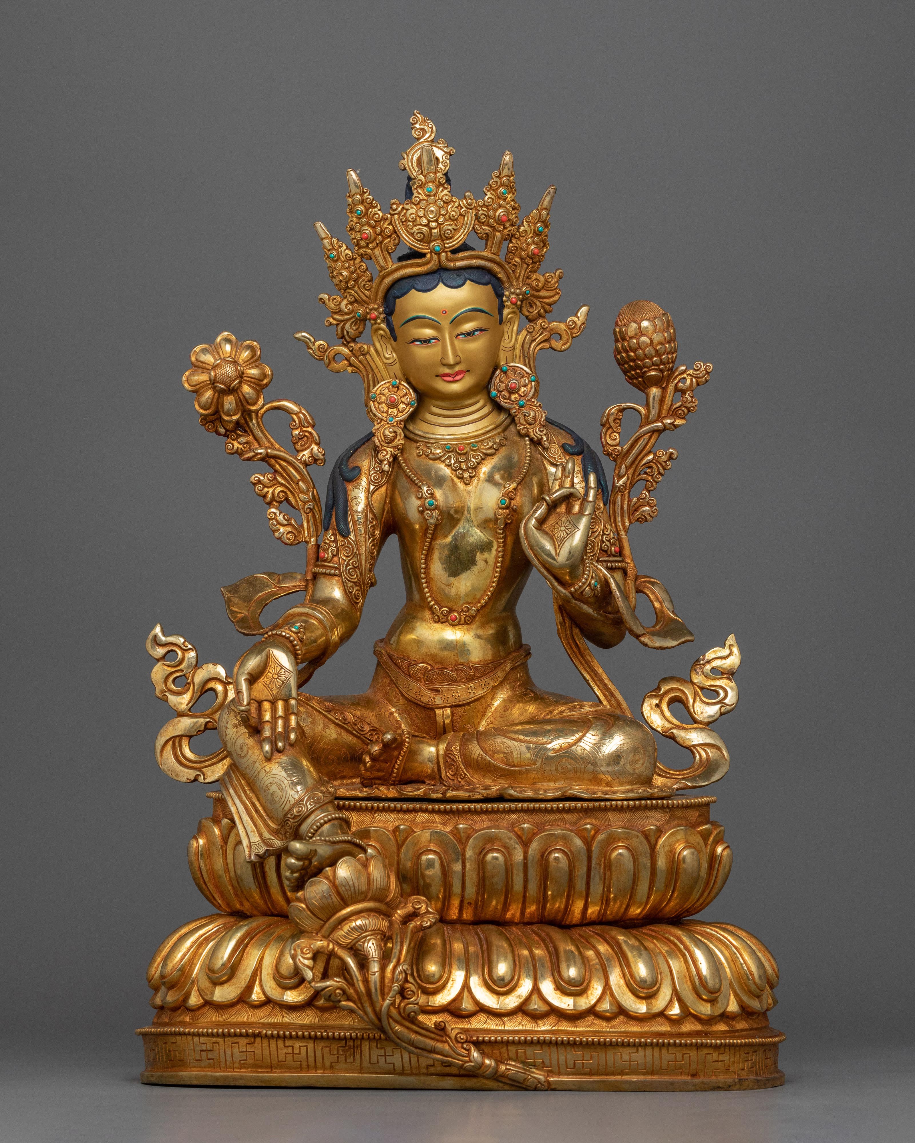Green Tara: Embodiment of Active Compassion | Traditionally 24K Gold Gilded Statue