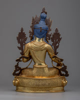 With our Green Tara Figurine, you may welcome the personification of compassion into your home. With a height of 12.7 inches and a base of 8.6 inches, this statue is ideal for your home, shrine, or meditation place. The statue is made of copper, gilded with 24k gold, and ornamented with 24k gold and acrylic paintings, symbolizing Nepalese craftsmanship's rich legacy.