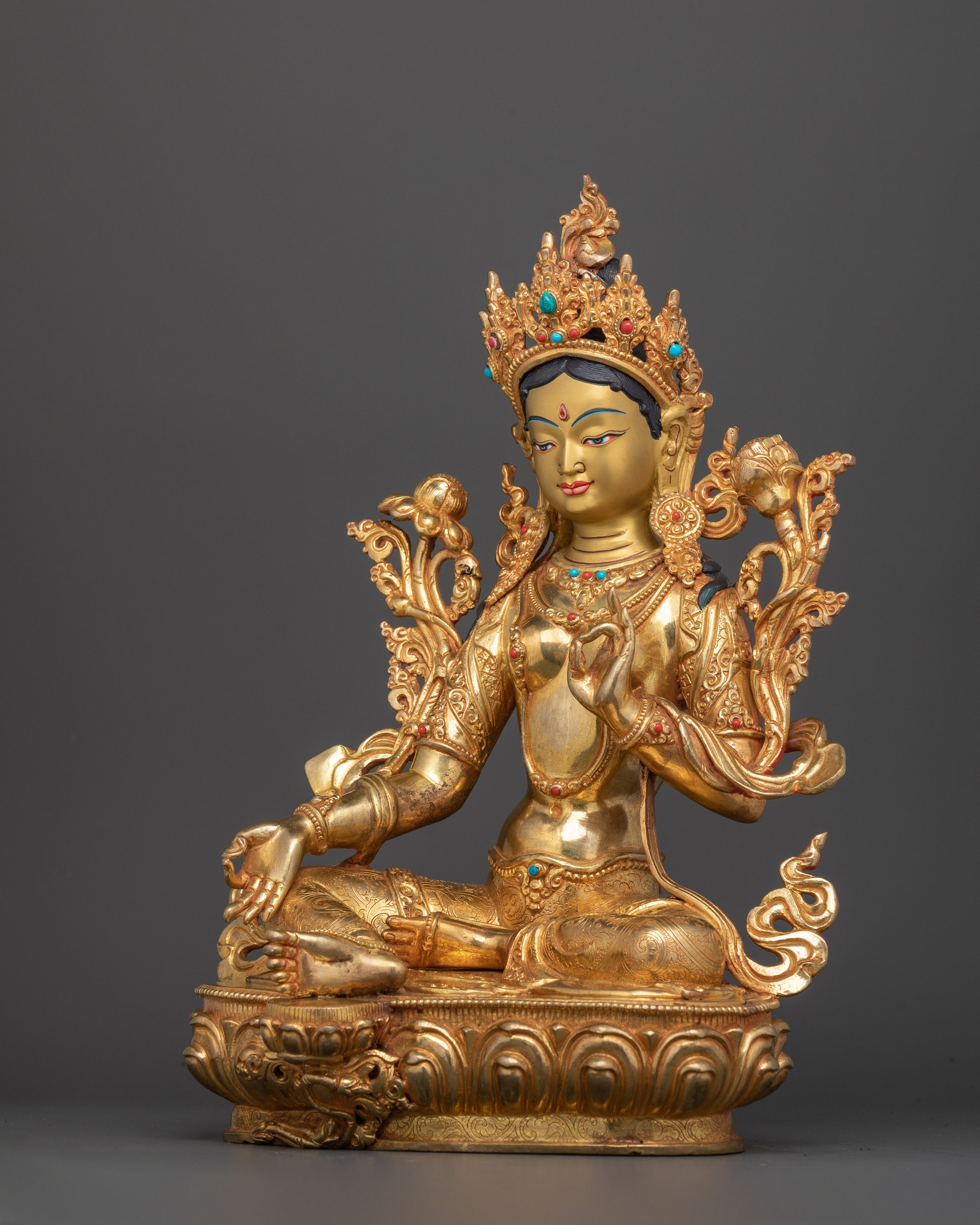 Green Tara Goddess of Buddhism | 24K Gold Gilded Tibetan Art