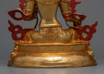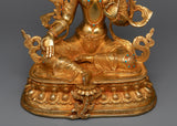Green Tara Goddess Statue For Buddhism Shrine | 24K Gold Gilded Elegance