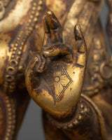 Green Tara in Antique Finish | 24K Gold Gilded Copper Statue